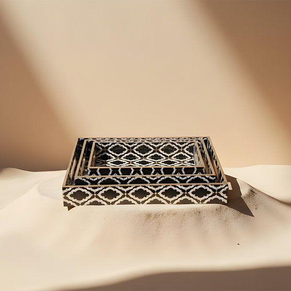 Amimashop® Black Set of 2 Wooden Serving Trays with Coasters 12"& 14"