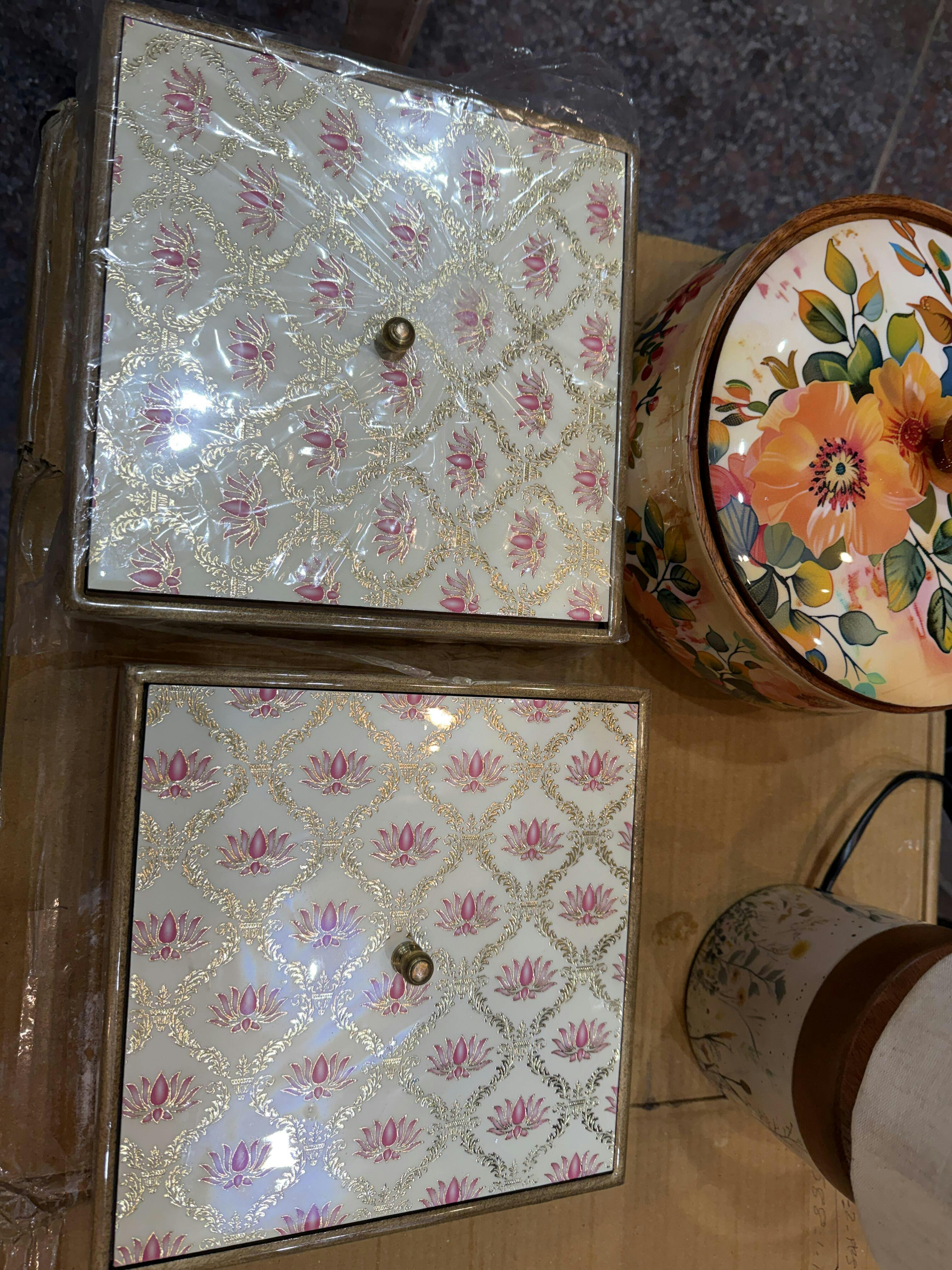 Wooden Handcrafted Spice Box with 6 Containers | Wooden Masala Box for Kitchen Storage | Multipurpose Dry Fruit Box & Condiment Organizer | White Gold Design (10 x 8.5 x 3 Inches)