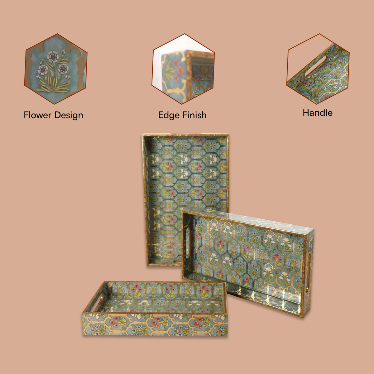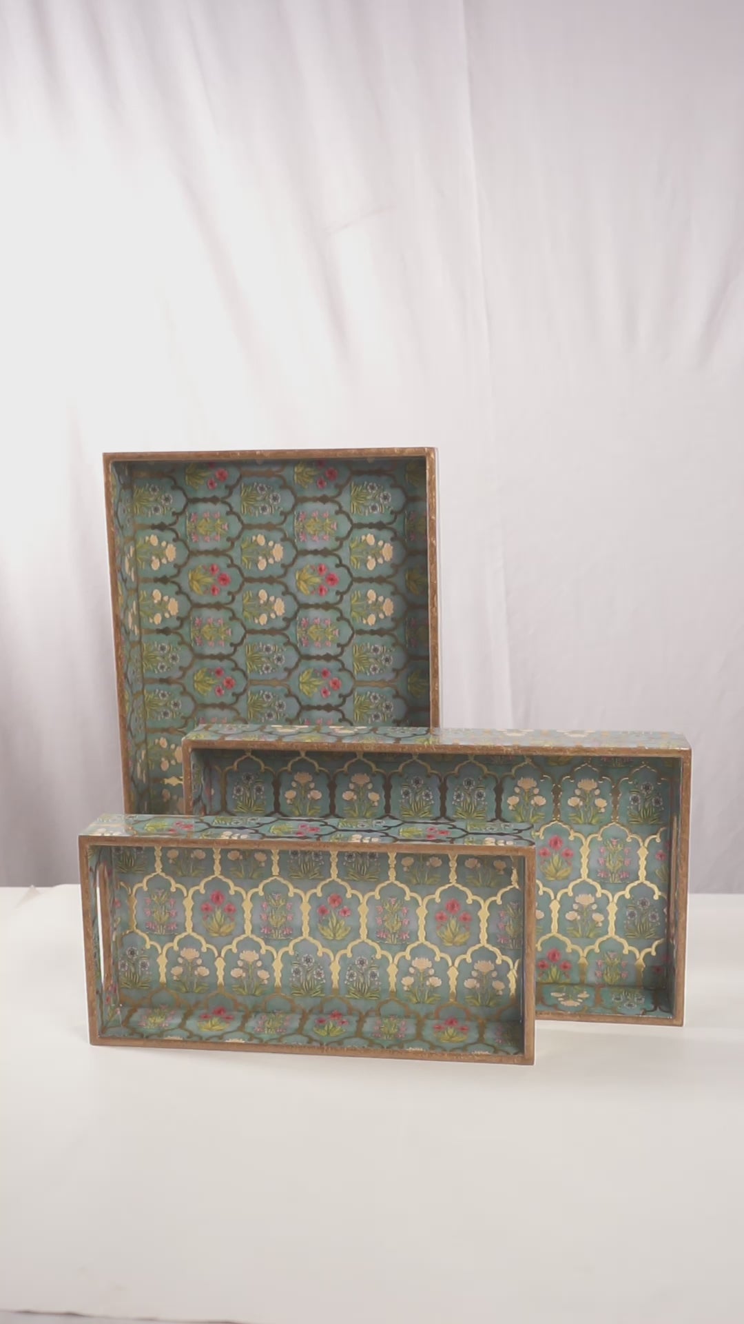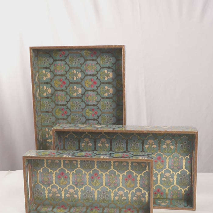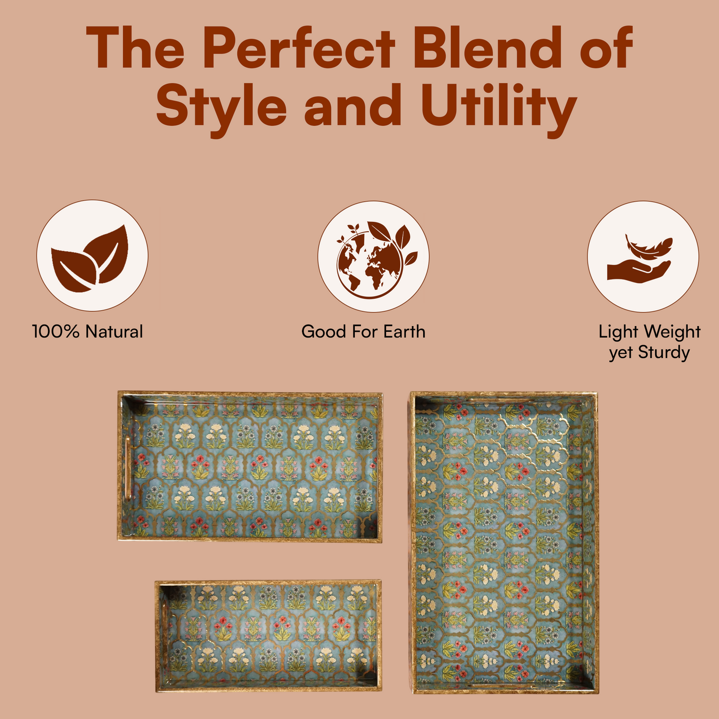 Amimashop® Set of 3 Rectangular Wooden Serving Trays - 12", 14", 16" Rustic Wood Cheese Board and Appetizer Platters