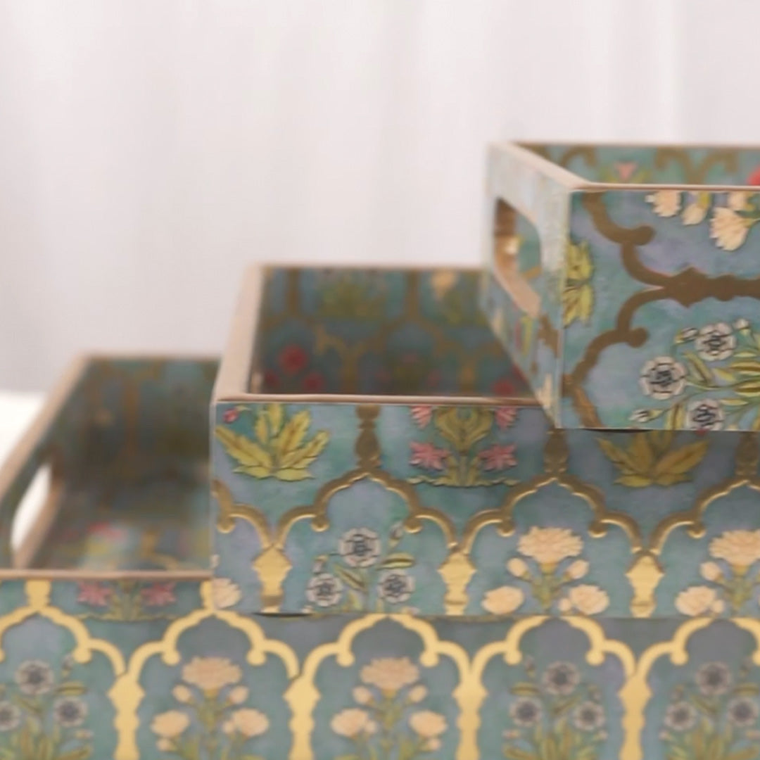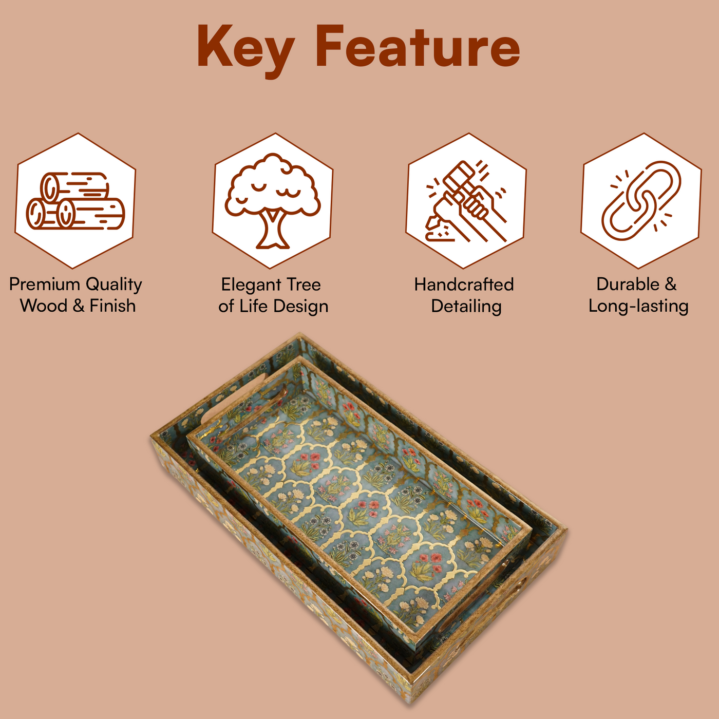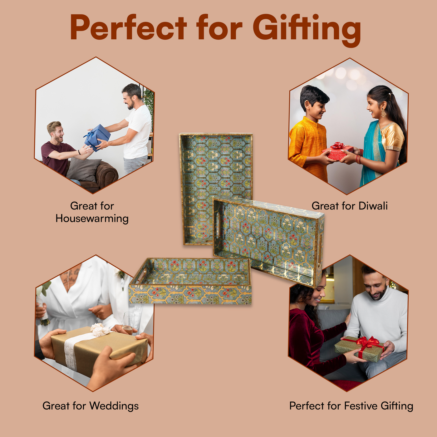 Amimashop® Set of 3 Rectangular Wooden Serving Trays - 12", 14", 16" Rustic Wood Cheese Board and Appetizer Platters