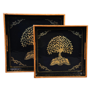 Amimashop® Black Tree Set of 2 Wooden Serving Trays 12"& 14"
