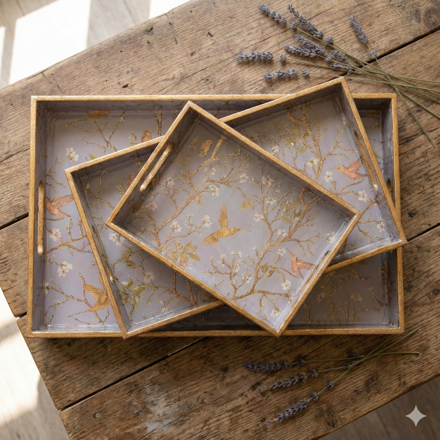 Elegant GRAY Design: Stylish gray patterned wooden tray set that adds a touch of sophistication to your kitchen and dining...