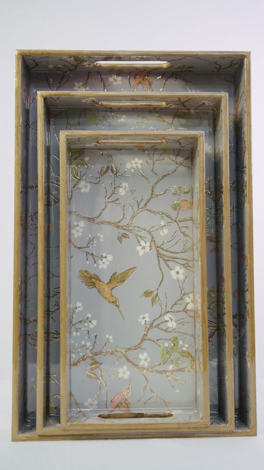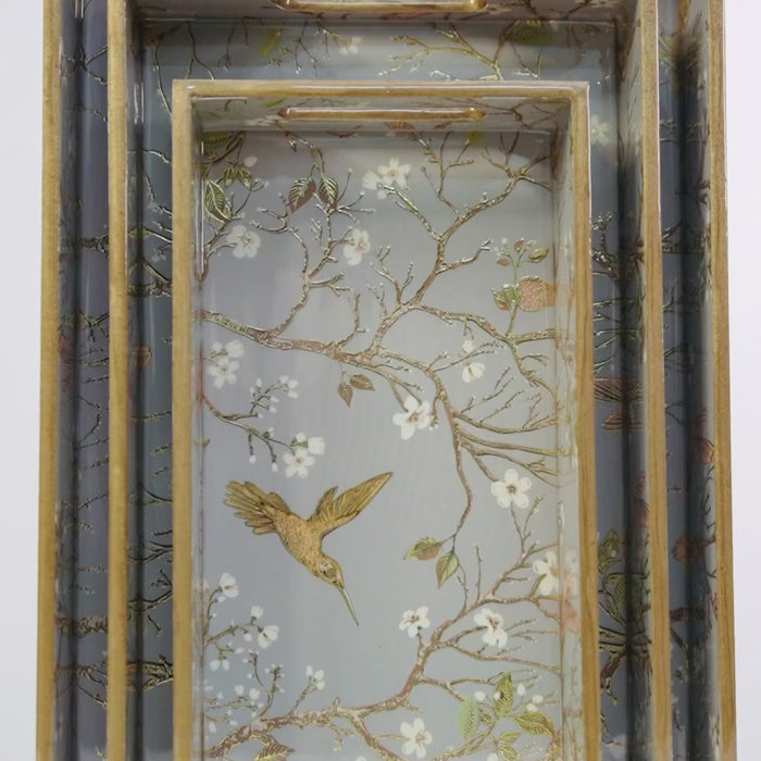 Gray Set of 3 Rectangular Wooden Serving Trays 16", 14", 12"