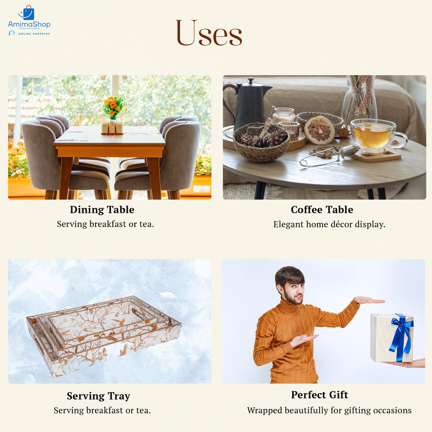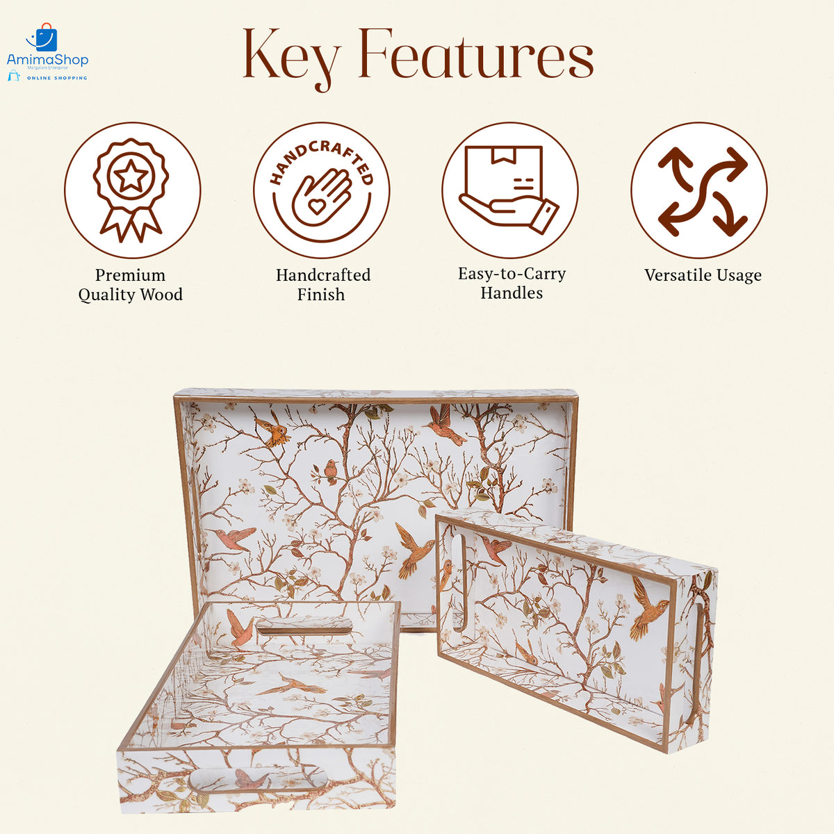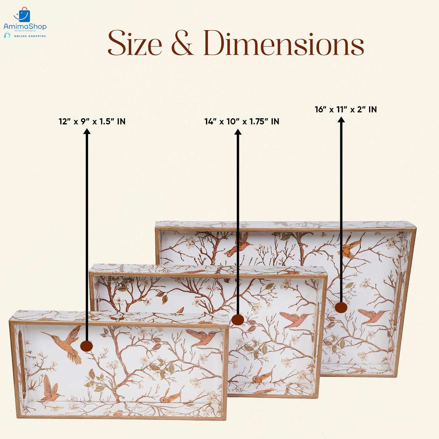 Amimashop® Off White Set of 3 Rectangular Wooden Serving Trays 16", 14", 12"